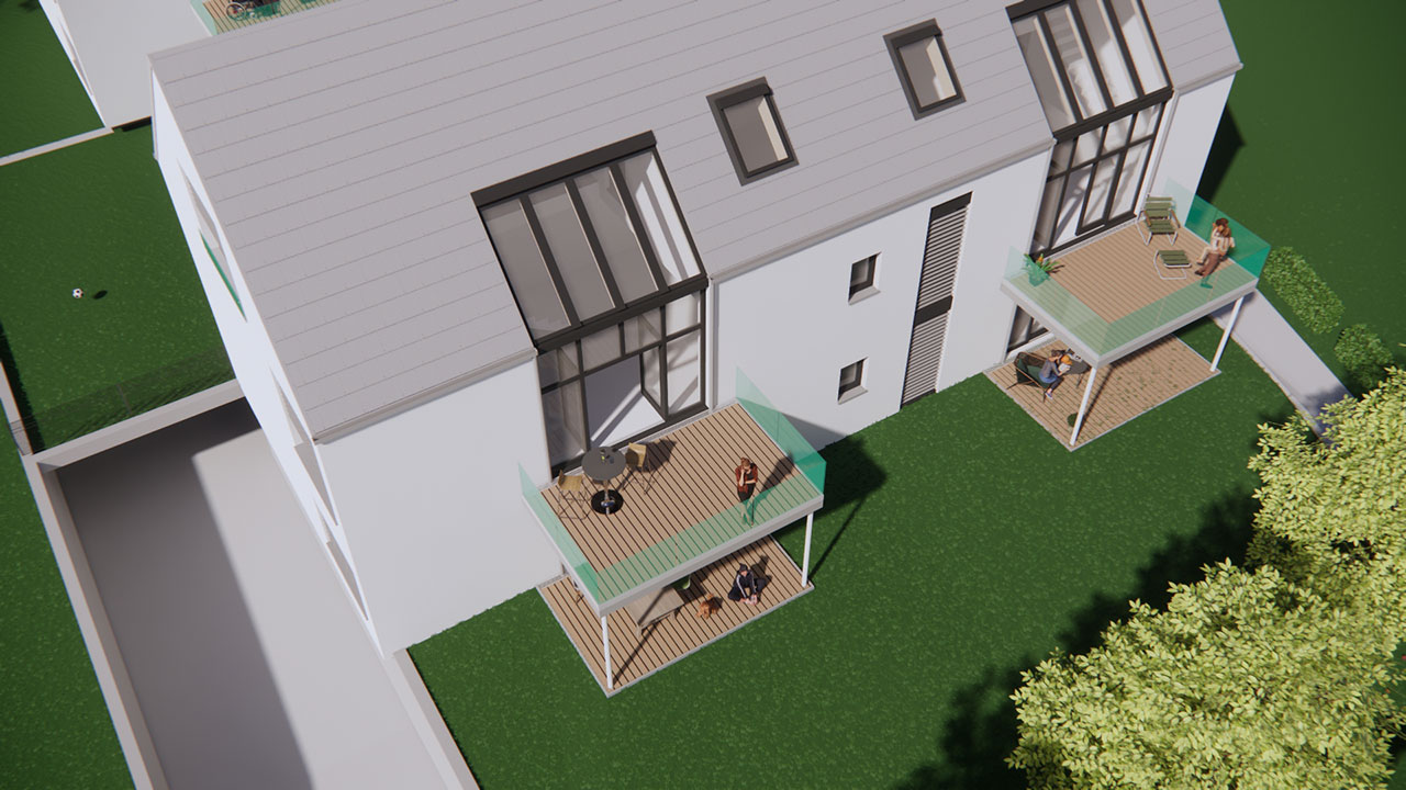 Die Häuser überzeugen durch eine nachhaltige Bauweise, ein stimmiges Energiekonzept (förderfähiges KfW55-Haus) und eine durchdachte Wohnkonzeption, die Wohnqualität und Komfort vereint. Abgerundet wird das Angebot durch eine Tiefgarage mit großzügigen Stellplätzen und Gärten mit Sondernutzungsrecht – ideal für ein modernes, urbanes Wohnen zwischen Zentrum und Naherholung.