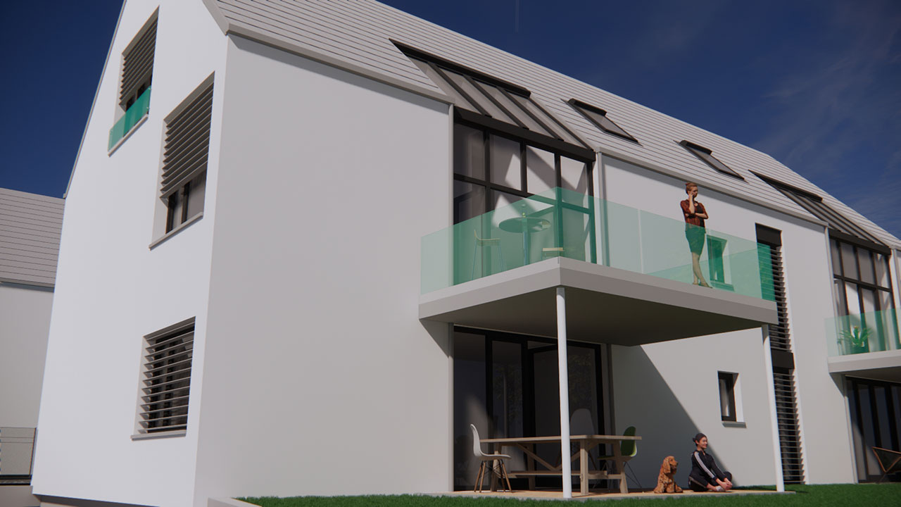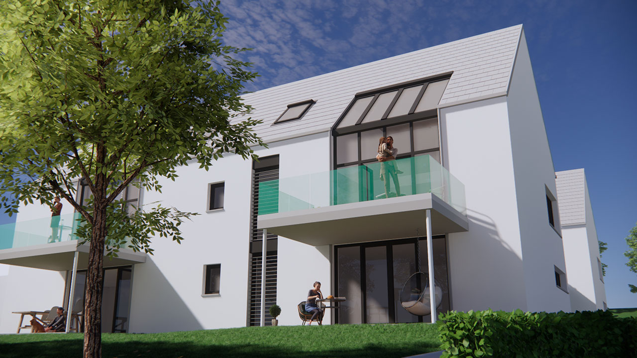 Das Wohnangebot umfasst 2-, 3- und 4-Zimmerwohnungen von ca. 59 bis 135 qm für Singles, Paare und Familien. Im Erdgeschoss entstehen Wohnungen mit Terrasse und Gartenanteil, im Obergeschoss Maisonettewohnungen mit Balkon und Galeriegeschoss. Über einen gemeinsamen Aufzug sind alle Wohnungen barrierefrei erreichbar.